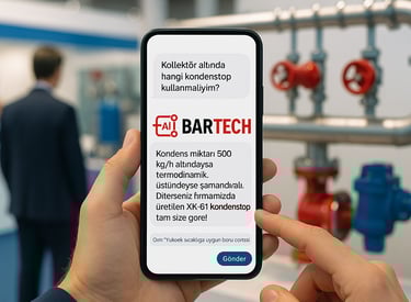 Bar-Tech AI Discovery Edition, denemeniz için ücretsiz versiyon olup; yalnızca genel bilgilendirme, deneme ve egitim amacıyla hazırlanmıstır. Verilen teknik bilgiler, standart prosedürlerin veya üretici talimatlarının yerine geçmez. Herhangi bir bakım, ayar veya devreye alma işlemi yalnızca yetkili servis veya sorumlu mühendis tarafından yapılmalıdır. Bu versiyonun ürettiği cevaplar tavsiye niteliginde olup, Bar-Tech ve iştirakleri hukuki veya teknik sorumluluk kabul etmez. Daha fazla bilgi için lütfen info@bartech.services'a mail atınız.